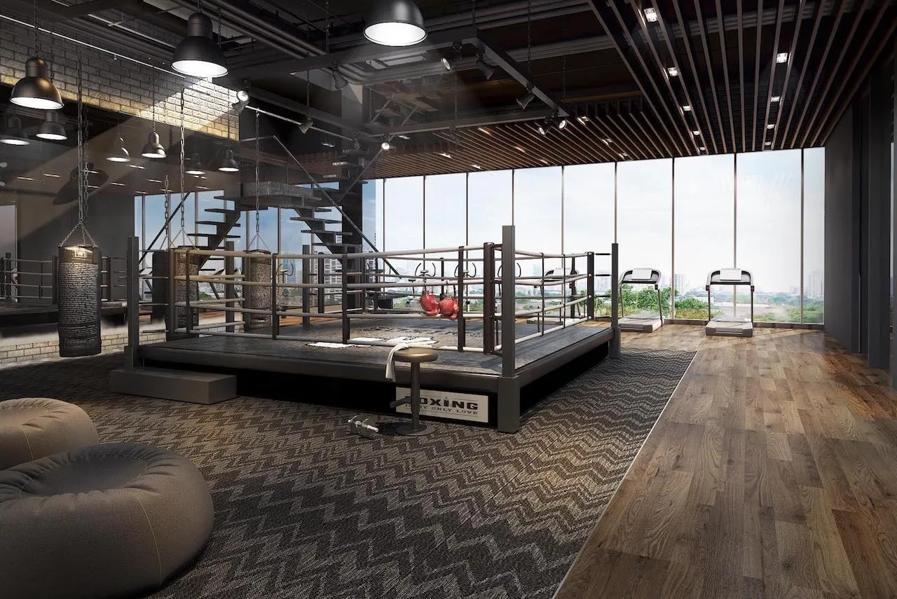 A two-story fitness center, boxing arena, and dedicated yoga room